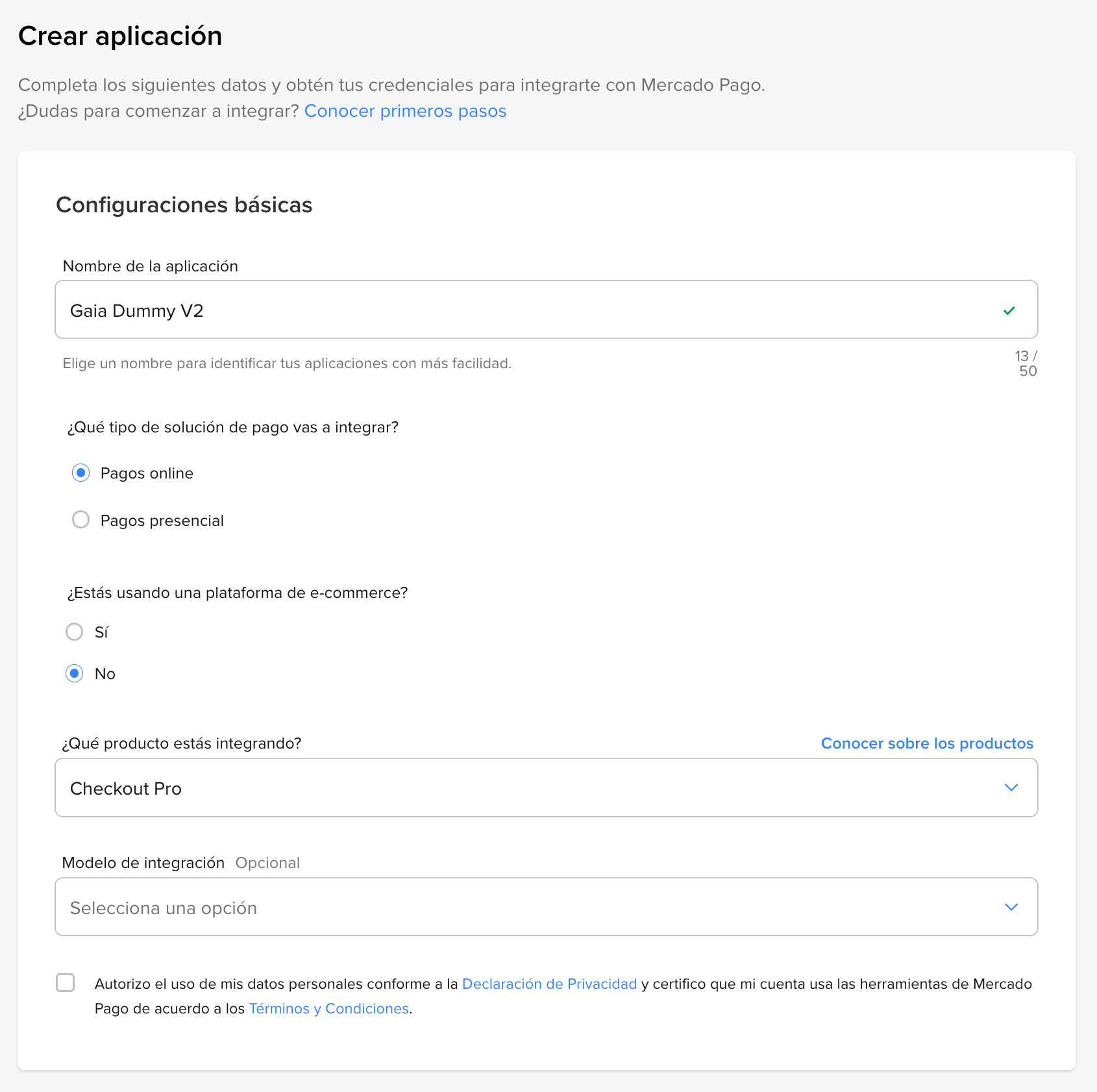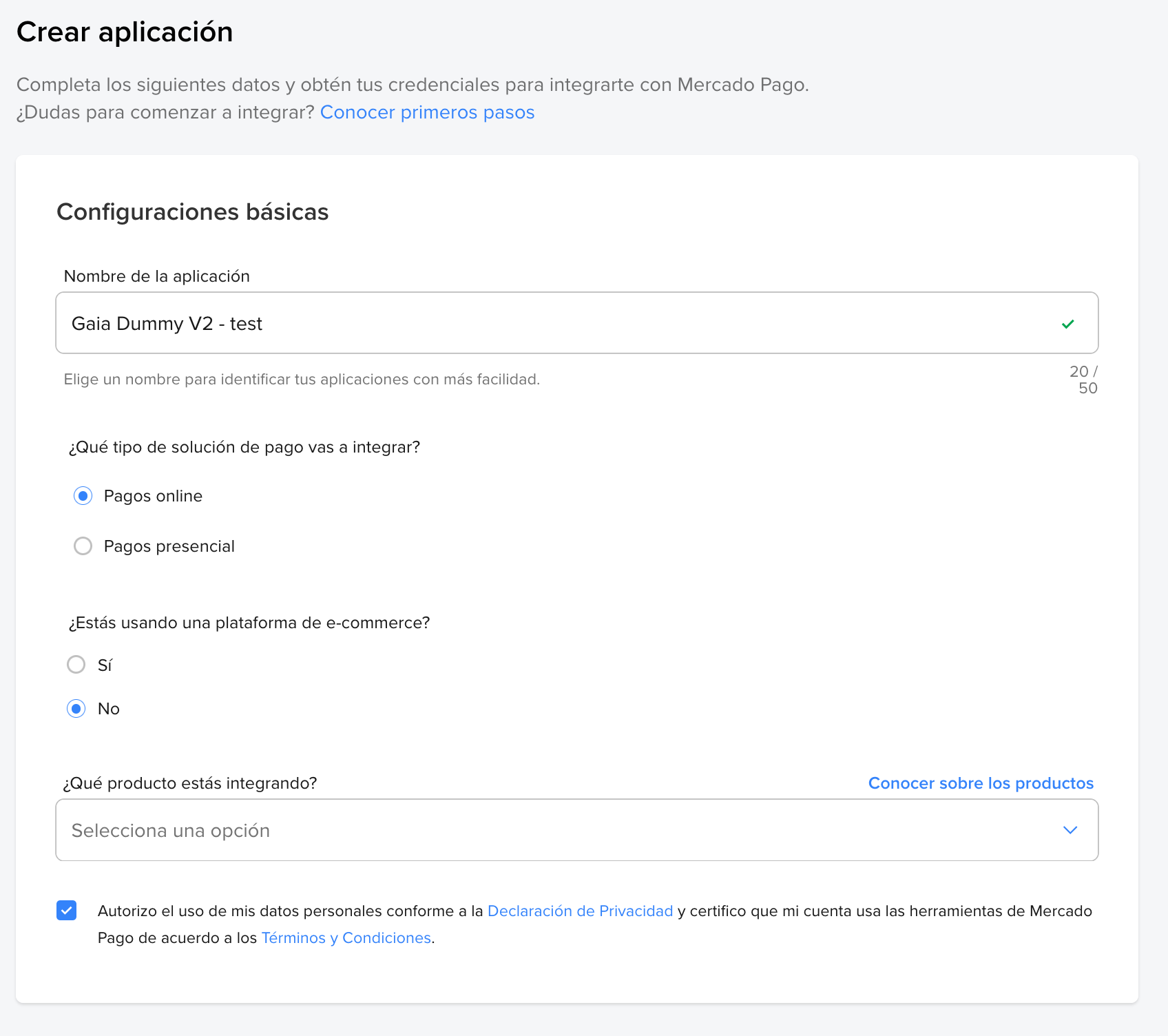 Una vez creada la aplicación, configuramos una cuenta de prueba de vendedor