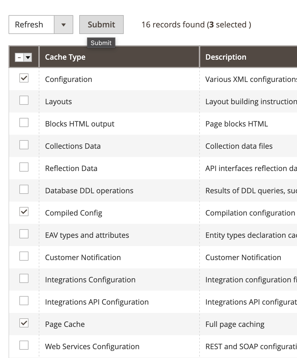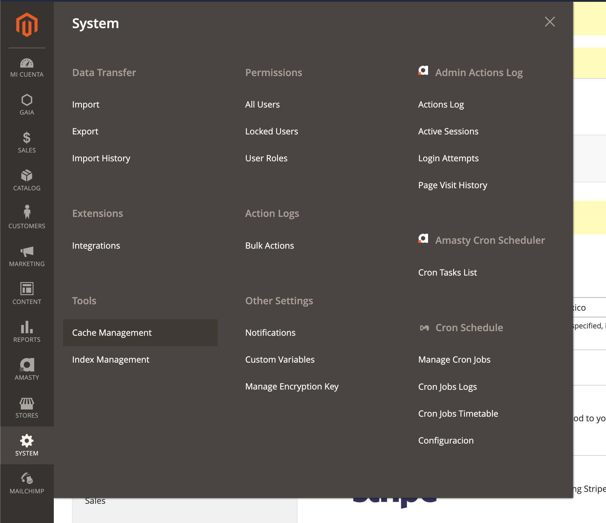 Como paso adicional, para asegurarnos de haber tomado la nueva configuración, limpiamos la caché de Magento