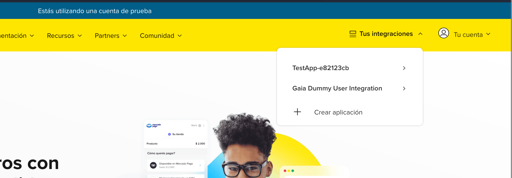 Entrar a https://www.mercadopago.com.mx/developers/es en la sección de “Tus integraciones”